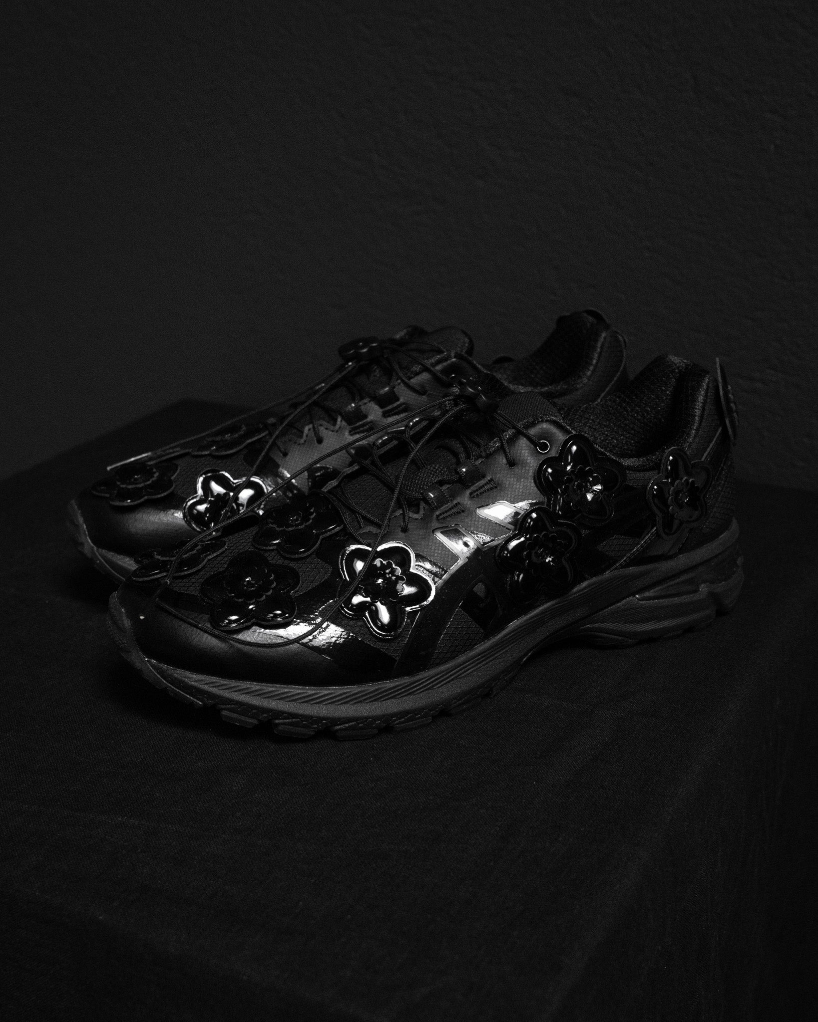 A low-top iteration of the Gel-Terrain sneaker created through the collaboration between ASICS and Danish designer Cecilie Bahnsen. The design features a ripstop mesh upper layered with padded three-dimensional floral appliqués finished with a subtle gloss, softening the technical construction. A speed-lacing system and performance-driven sole anchor the silhouette in ASICS’ functional heritage.